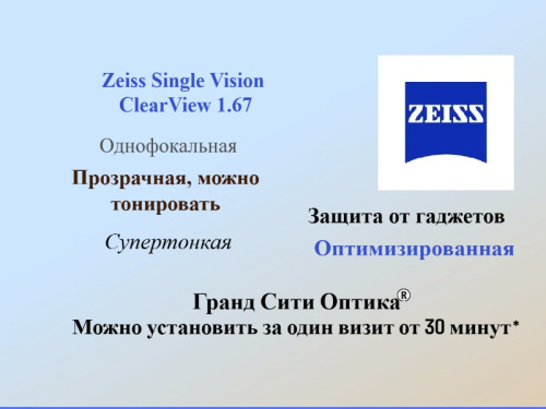 Zeiss Single Vision ClearView 1.67