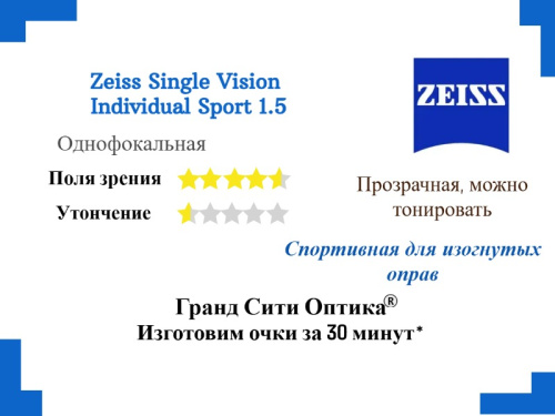 Zeiss Single Vision Individual Sport 1.5