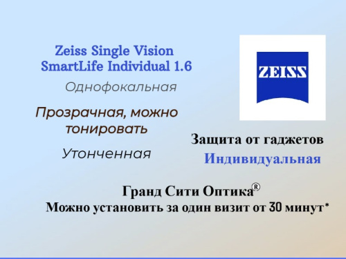 Zeiss Single Vision SmartLife Individual 1.6