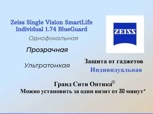 Zeiss Single Vision SmartLife Individual 1.74 BlueGuard