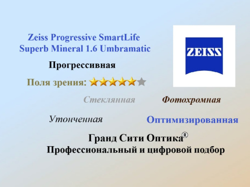 Zeiss Progressive SmartLife Superb Mineral 1.6 Umbramatic